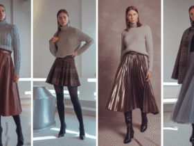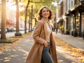 Start with a chunky knit sweater in an oversized fit – cable knit or mixed patterns work beautifully here. Pair it with a suede or corduroy skirt in a complementary warm tone, or go for high-waisted flared jeans. Layer on a long vest or sleeveless duster for added dimension. The accessories are where this outfit really comes together: add a wide-brim hat, knee-high suede boots, a fringed scarf, and a leather bucket bag. Don’t forget your jewelry – mixed metal pieces, layered necklaces, and stacked rings add that perfect finishing touch. This outfit is ideal for apple picking, fall festivals, or cozy coffee shop dates. The best part? You’ll be warm, comfortable, and looking absolutely stunning in all those fall photos!