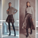 Start with a chunky knit sweater in an oversized fit – cable knit or mixed patterns work beautifully here. Pair it with a suede or corduroy skirt in a complementary warm tone, or go for high-waisted flared jeans. Layer on a long vest or sleeveless duster for added dimension. The accessories are where this outfit really comes together: add a wide-brim hat, knee-high suede boots, a fringed scarf, and a leather bucket bag. Don’t forget your jewelry – mixed metal pieces, layered necklaces, and stacked rings add that perfect finishing touch. This outfit is ideal for apple picking, fall festivals, or cozy coffee shop dates. The best part? You’ll be warm, comfortable, and looking absolutely stunning in all those fall photos!